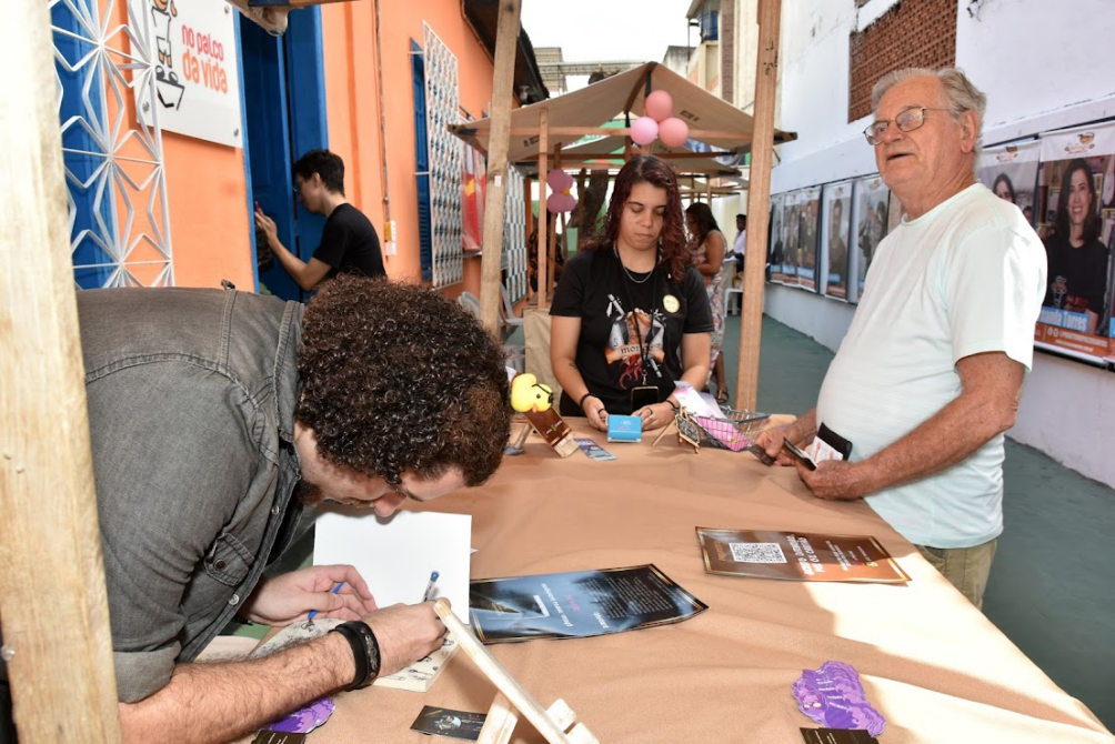 Cada foto desse carrossel carrega uma história, um olhar concentrado, um abraço sincero, um aplauso que ecoa mais do que som — ecoa propósito. Porque, quando a gente sobe no palco, não é só para aparecer; é para transformar. Domingo foi exatamente isso: transformação em movimento. Além de oficinas artísticas tivemos o Papo de Mestre com os escritores Simon Khoury e Eunice Khoury na Arena Paschoal Carlos Magno.